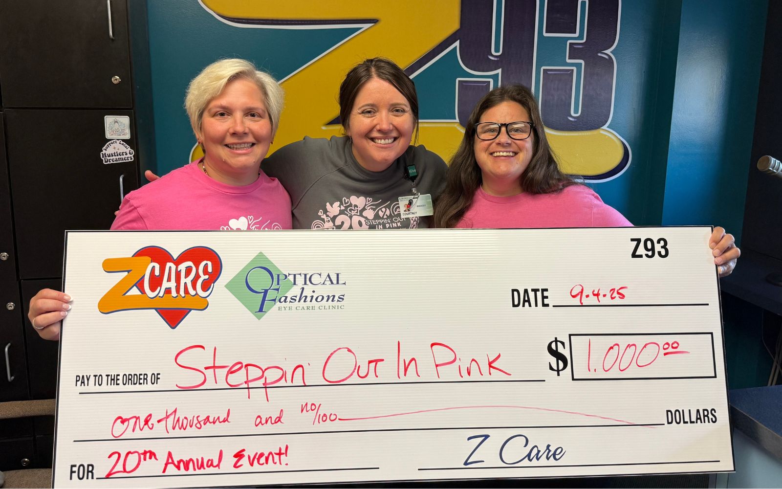 Thanks to our sponsors, Optical Fashions, Zcare is proud to donate $1,000 to support local breast cancer research and programs!
