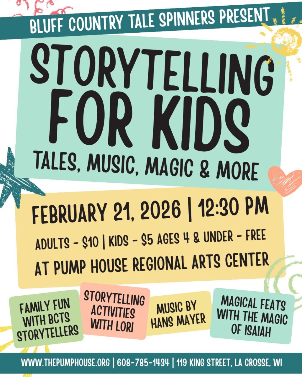 Storytelling for Kids: Toasty Tales, Music, and Magic Presented by Bluff Country Tale Spinners Saturday, February 21 at 12:30pm 15-minute intermission Join the Bluff Country Tale Spinners for stories, […]